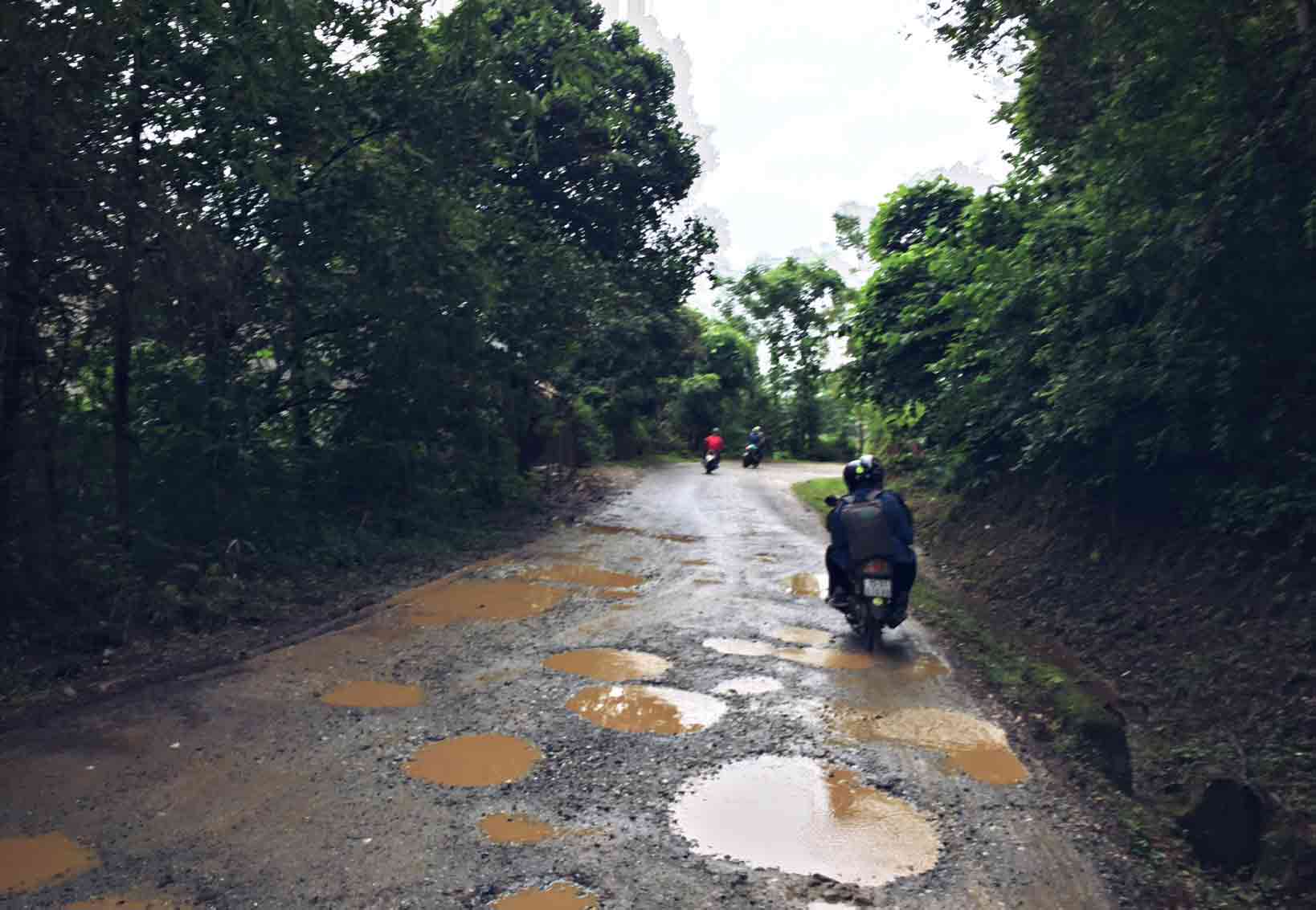 Suốt hơn 100km từ thành phố đến Bảo Lạc đường rất xấu, nhiều ổ gà. Có 2 đoạn dọc đường đi bị ngập quá bánh xe, chúng tôi phải di chuyển bằng bè và xe lôi. Đèo 15 tầng theo như mô tả thuộc xã Xuân Trường, Bảo Lạc nhưng trên thực tế chúng tôi gặp 2 con đèo đều khoảng 14, 15 tầng cách nhau 19km, vị trí của cả 2 con đèo này đều thuộc Xuân Trường. Do đường xấu, trời mưa và xe tôi bị thủng xăm 1 lần nên chúng tôi đến Bảo Lạc chậm hơn dự kiến gần 2 tiếng.