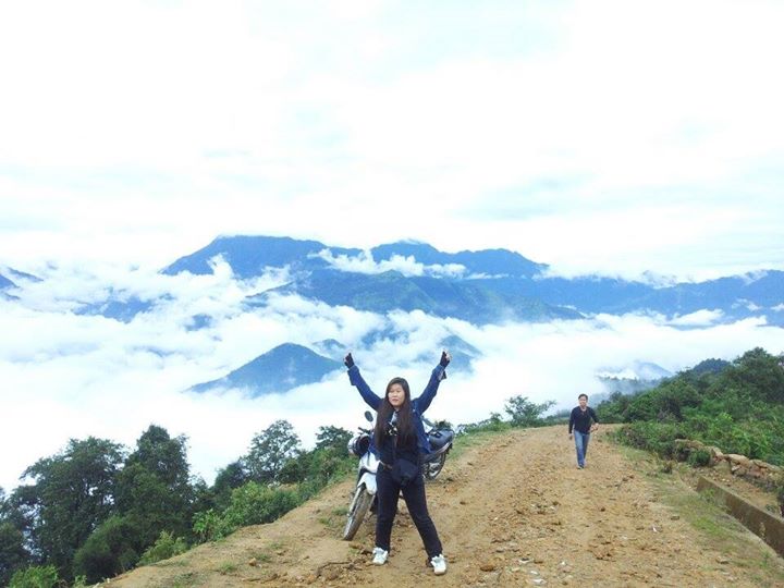 5h30 sáng bừng tỉnh háo hức săn mây. Mần 3 tô mì gói mua ở ngay nhà nghỉ, vì cô chủ nhà nghỉ kiêm nghề bán tạp hóa kiếm thêm. Ăn vội ròi lại chạy ra ngoài đứng ngó xuống thung lũng, đúng là có biển mây thật, nhưng rất xa và mờ, sương cũng lại đang kéo đến. Chả lẽ đến đây ròi không săn được mây, nhiều người nói may lắm mới thấy biển mây, mình không tin điều đó và phóng xe tìm đường lên chỗ cao hơn.